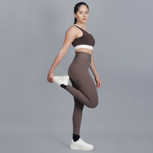 Chiclo Women's Brown Monochrome Set With Tights, Sports Bra & Socks