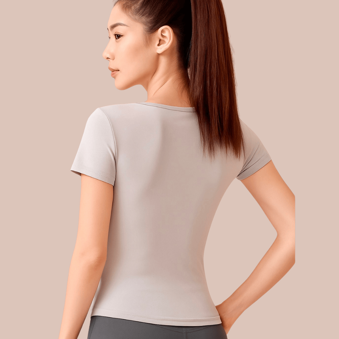 Meet the MonoMode V-Cut Set in two-toned grey—a sleek and minimal activewear essential with subtle shaping details. The short-sleeve top features a chic V-notch neckline and gathered detailing along the waist, creating a flattering, cinched effect that contours your midsection without clinging. Paired with smooth, high-waisted leggings in a deeper grey tone, this set delivers effortless style and performance. The fabric is breathable, stretchable, and ultra-soft—perfect for everything from your workouts to your off-duty days.